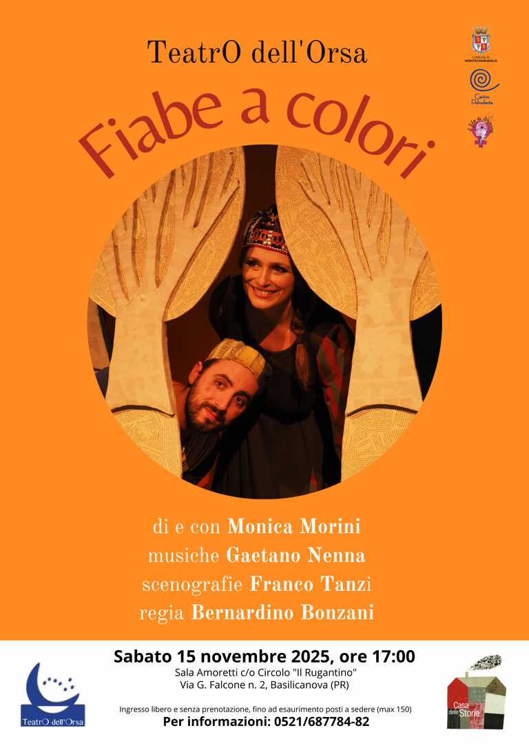 Sabato 15 novembre 2025 alle ore 17.00, presso la Sala Amoretti di Basilicanova, si terrà lo spettacolo teatrale "Fiabe a colori" dell'associazione Teatro dell'Orsa.