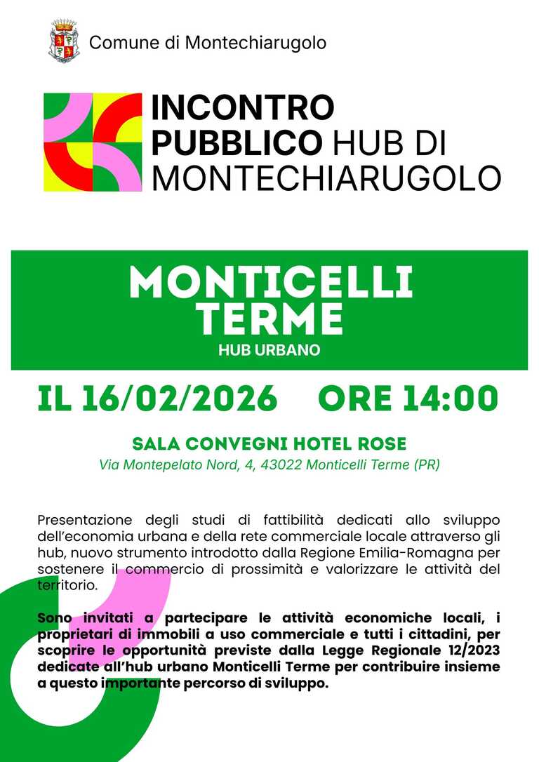 Sono invitati a partecipare le attività economiche locali, i proprietari di immobili a uso commerciale e tutti i cittadini, per scoprire le opportunità previste dalla Legge Regionale 12/2023 dedicate all’hub urbano Monticelli Terme per contribuire insieme a questo importante percorso di sviluppo.