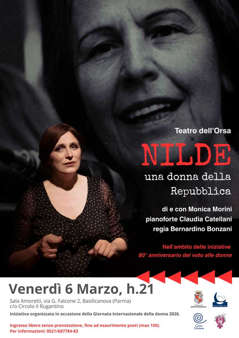 Venerdì 6 marzo la Sala Amoretti di Basilicanova ospita lo spettacolo tratrale della Compagnia Teatro dell'Orsa, un appuntamento speciale dedicato alla memoria, ai diritti e alla voce delle donne.