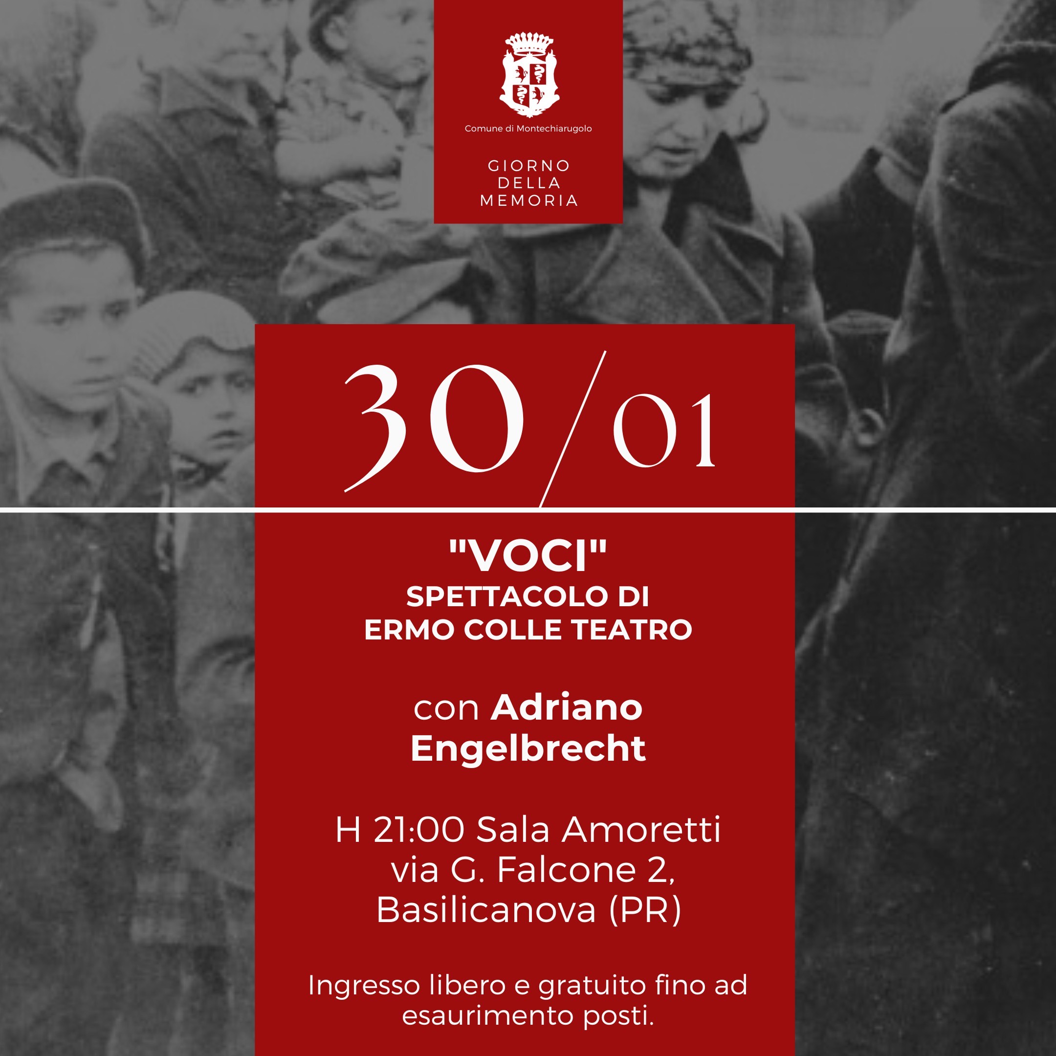 Venerdì 30 gennaio alle ore 21,00 presso la Sala Amoretti di Basilicanova (Via Falcone 2) andrà in scena lo spettacolo teatrale di Ermo Colle dal titolo "Voci?" con Sandra Soncini e Adriano Engelbrecht.